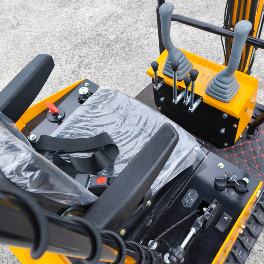 Mini-escavadora compacta de 0,85 toneladas, com motor a gasolina Briggs & Stratton.