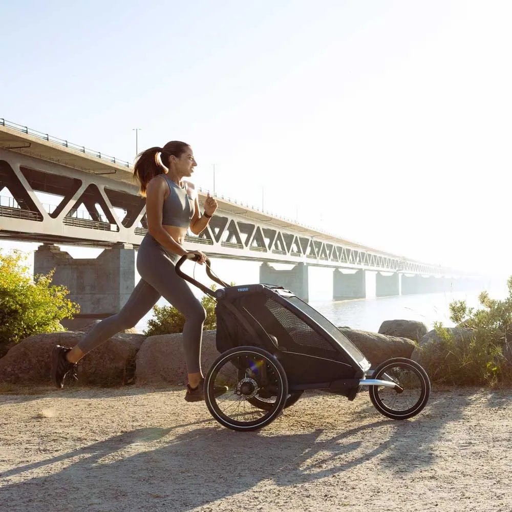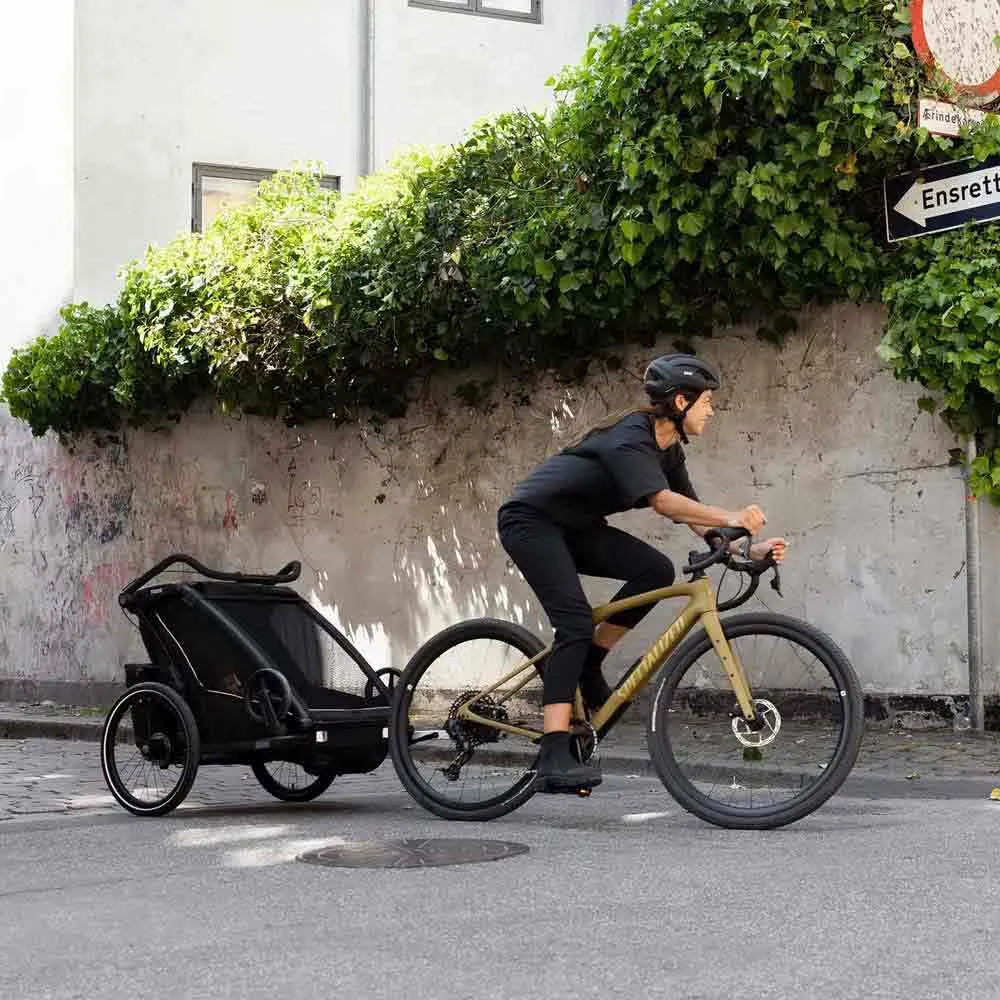 – Suspensão ajustável para permitir personalizar o conforto de condução à medida que seu filho cresce ou se você transportar objetos mais pesados no reboque.